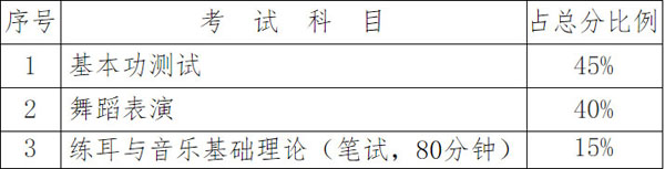 報(bào)考舞蹈表演專業(yè)的考生還須參加面試。舞蹈表演專業(yè)面試主要考查考生的形象、氣質(zhì)、身高等專業(yè)條件,要求:①五官端正,身材勻稱,氣質(zhì)好;②男生身高不低于170cm,女生身高不低于160cm;③專業(yè)條件達(dá)到所報(bào)專業(yè)的規(guī)定要求。面試成績(jī)只計(jì)合格與不合格,不計(jì)入省統(tǒng)考總分,作為報(bào)考專業(yè)錄取的參考依據(jù)。