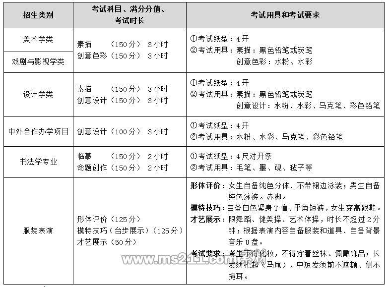 1、考生只能在美術(shù)學(xué)類、戲劇與影視學(xué)類、設(shè)計(jì)學(xué)類、中外合作辦學(xué)項(xiàng)目、書法學(xué)專業(yè)、服裝表演中選擇一類報(bào)考,不能兼報(bào)。