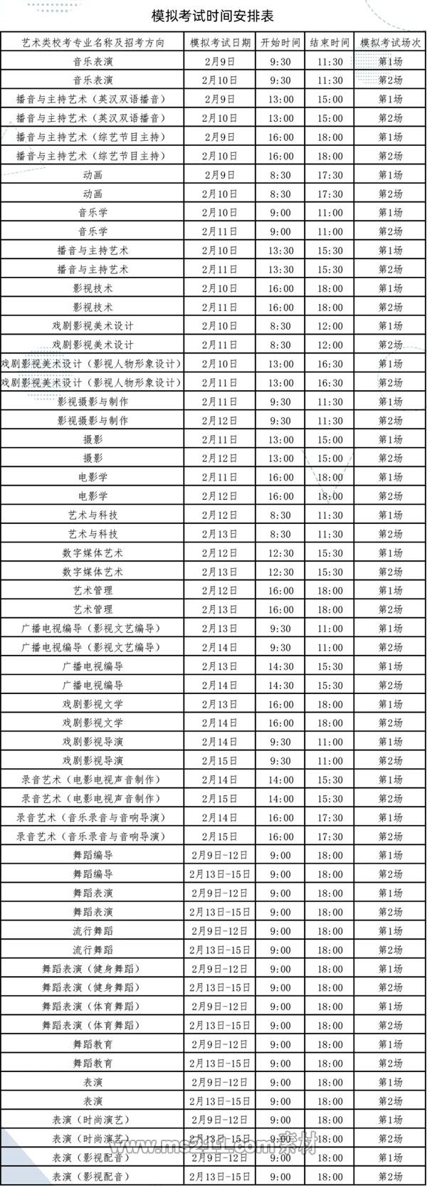 模擬考試從2月9日至2月15日結(jié)束。每個專業(yè)均有兩次模擬考試機會。各專業(yè)詳細模擬考試時間見《模擬考試時間安排表》: