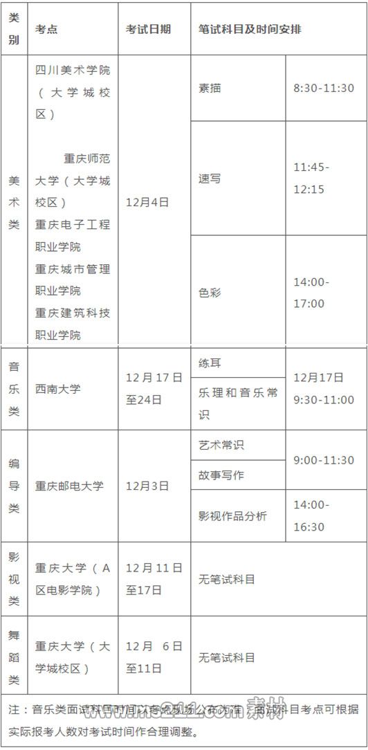 重慶市2023年專業(yè)統(tǒng)考由市教育考試院在2022年12月統(tǒng)一組織,委托考點(diǎn)具體實(shí)施;具體考試時(shí)間如下: