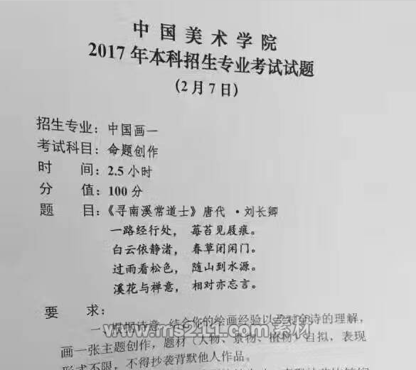 2017年中國美術(shù)學(xué)院中國畫一??伎碱}