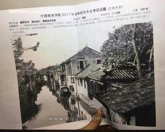 2017年中國美術(shù)學(xué)院建筑學(xué)(建筑藝術(shù)、城市設(shè)計)、環(huán)境設(shè)計(景觀與環(huán)藝類)??伎碱}色彩考題:江南水鄉(xiāng)照片  素描考題:人物寫生  速寫考