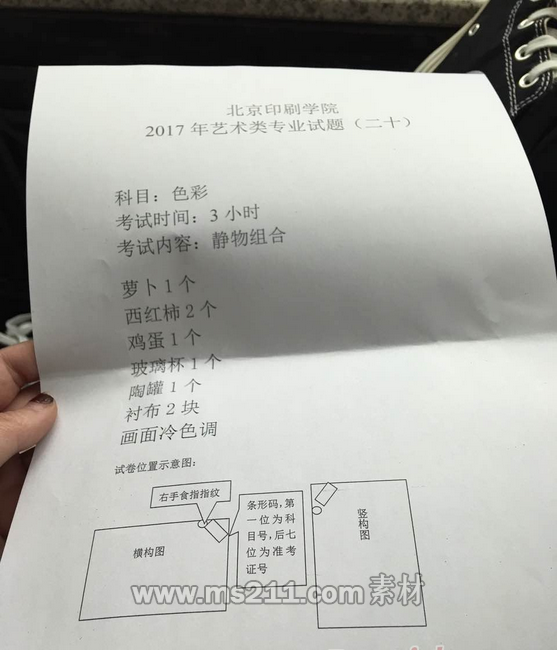 2017年北京印刷學(xué)院美術(shù)類??伎碱}(山西考點)
