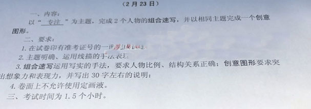 創(chuàng)意速寫考題:以“專注”為主題,完成2個(gè)人物的組合速寫,并以相同主題完成一個(gè)創(chuàng)意圖形。