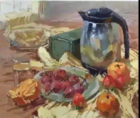 色彩考題:一個(gè)銅壺 、一個(gè)瓷盤,一個(gè)瓷碟、 一個(gè)蘋果,兩個(gè)橘子、兩個(gè)山楂,一塊灰色襯布、一塊淺色襯布、一塊深色襯布。