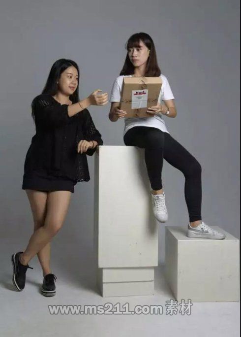 速寫考題:人物組合,一坐一站兩女青年坐著的拿著快遞盒子