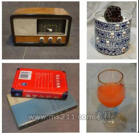 色彩考題:臺(tái)老式收音機(jī),一組瓷盒,一個(gè)蓮蓬,兩本書,一個(gè)盛有半杯橙汁的高腳杯;默寫內(nèi)容:兩塊襯布(色調(diào)自定)