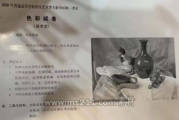 色彩考試一般選用日常生活的靜態(tài)物品(具有南方城鄉(xiāng)熟悉的如花卉、蔬菜、果類、器皿、襯布等物)作為考試內(nèi)容。