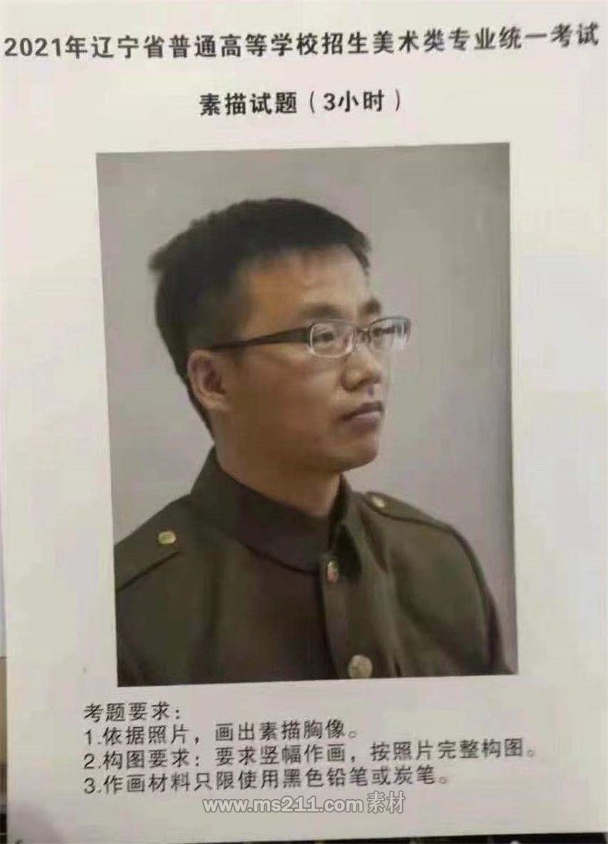 素描考題:照片模擬寫生,戴眼鏡的軍人胸像,具體如下圖: