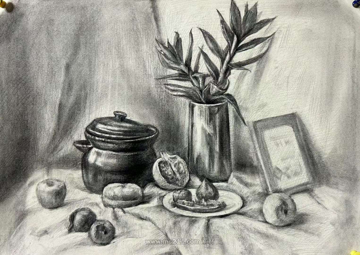 一、素描考題:靜物組合,照片模擬寫生。