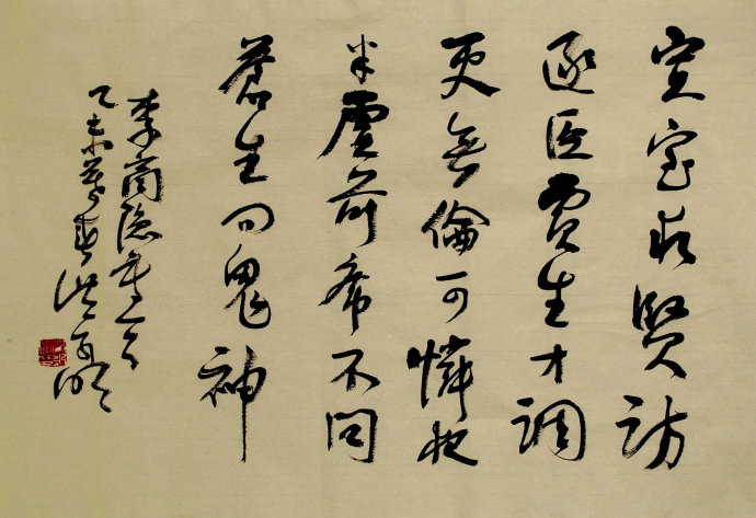 可憐夜半虛前席,不問蒼生問鬼神。四尺對開(條幅),不落款。
