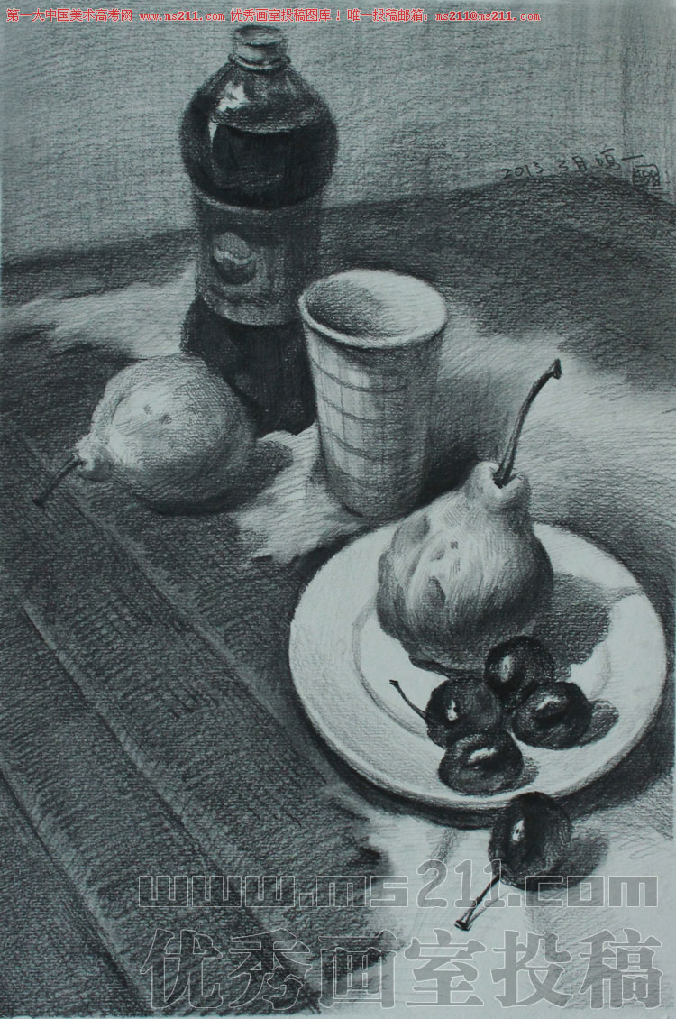 陜西西安鳴一畫(huà)室,美術(shù)高考素描靜物投稿作品2013052015