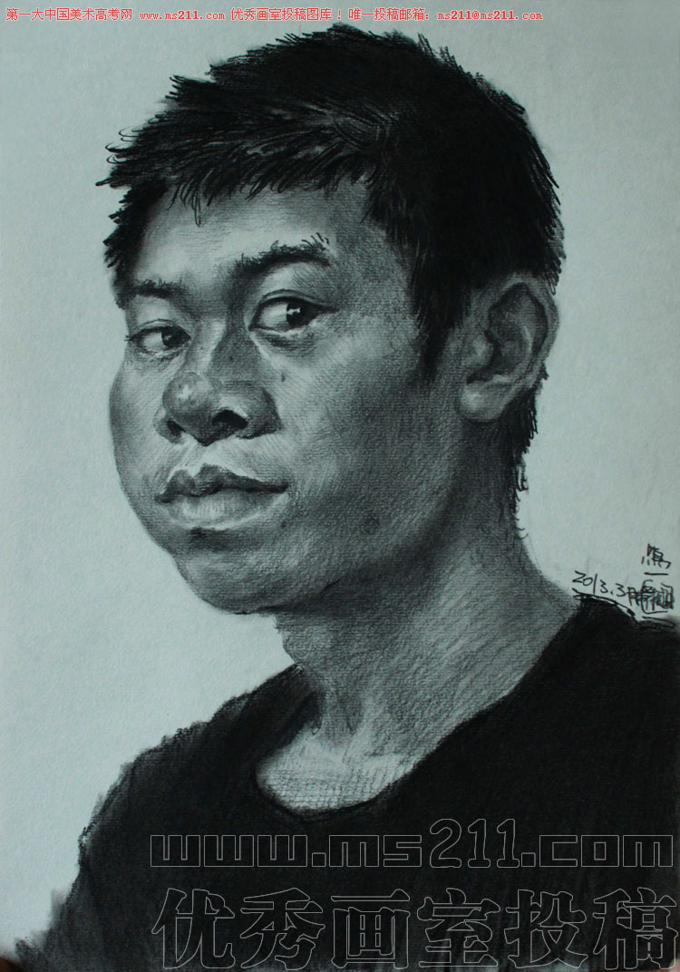 陜西西安鳴一畫室,美術(shù)高考素描頭像投稿作品2013052006