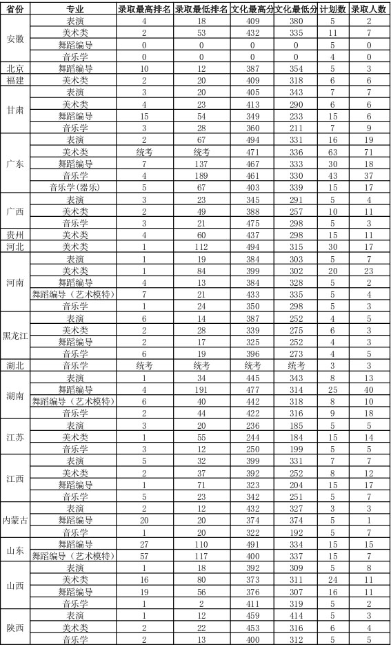 所有藝術(shù)類專業(yè)在規(guī)定計(jì)劃投放時(shí)必須分藝術(shù)文理的省份只招收藝術(shù)文,規(guī)定計(jì)劃不分藝術(shù)文理的省份則文理兼招。