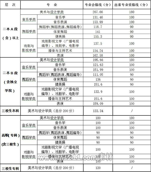 2017年江西省普通高校招生藝術(shù)類專業(yè)合格線、資格線
