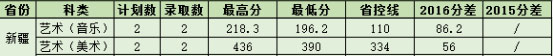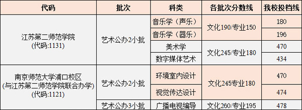 江蘇第二師范學院2016年省外藝術類本科專業(yè)錄取分數(shù)線