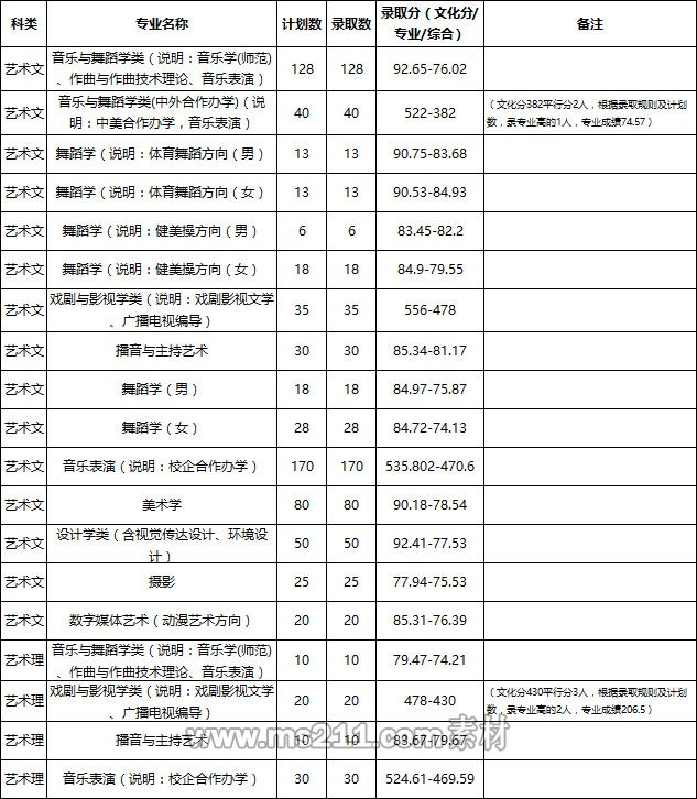 2、音樂類(含音樂學(xué)(師范)、音樂表演、作曲與作曲技術(shù)理論、音樂學(xué)(音樂藝術(shù)管理方向))、舞蹈學(xué)(男)、舞蹈學(xué)(女)、舞蹈學(xué)(體育舞蹈)、舞蹈學(xué)(健美操)、播音與主持藝術(shù)、美術(shù)學(xué)、設(shè)計(jì)學(xué)類(含視覺傳達(dá)設(shè)計(jì)、環(huán)境設(shè)計(jì))、數(shù)字媒體藝術(shù)(動(dòng)漫藝術(shù)方向)專業(yè):進(jìn)檔考生分別按專業(yè)成績(jī)由高分到低分錄??;專業(yè)分?jǐn)?shù)相同時(shí),優(yōu)先錄取高考文化投檔成績(jī)高者。
