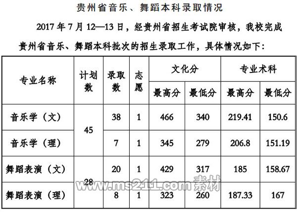 貴州工程應用技術學院2017年藝術類專業(yè)錄取規(guī)則