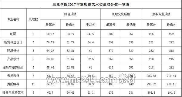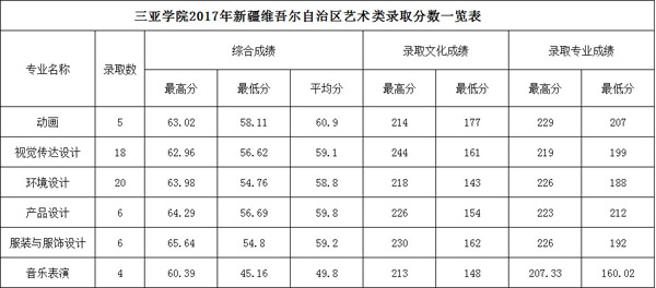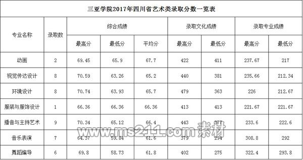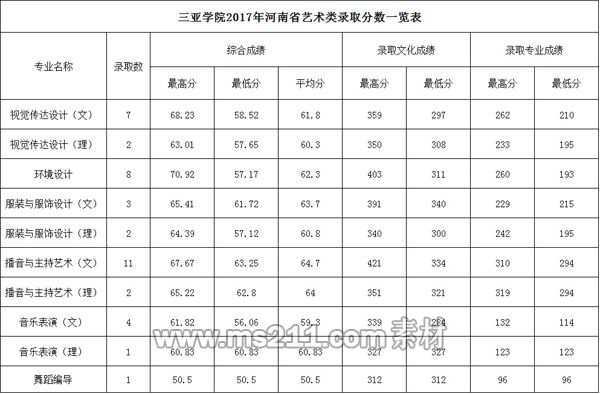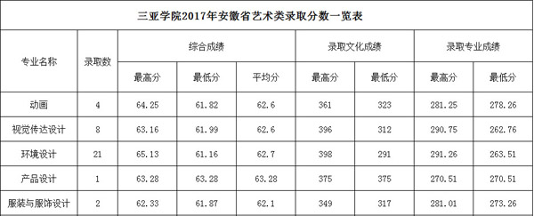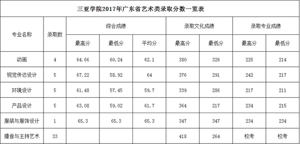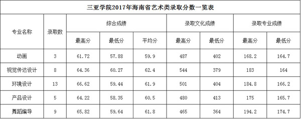 2017年三亞學(xué)院藝術(shù)類本科分省分專業(yè)錄取分?jǐn)?shù)線