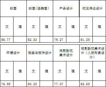 動畫專業(yè)、動畫專業(yè)(漫插畫)、視覺傳達設(shè)計專業(yè)、環(huán)境設(shè)計專業(yè)、產(chǎn)品設(shè)計專業(yè)、戲劇影視美術(shù)設(shè)計專業(yè)、戲劇影視美術(shù)設(shè)計專業(yè)(人物形象設(shè)計):上述專業(yè)屬于美術(shù)類專業(yè),根據(jù)德、智、體全面考核擇優(yōu)錄取的原則,在考生政治思想品德考核和體檢合格的情況下,按專業(yè)分和文化折算分①5:5比例的綜合分②排序擇優(yōu)錄取。浙江省承認省統(tǒng)考成績,按浙江省教育考試院有關(guān)規(guī)定擇優(yōu)錄取。