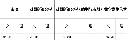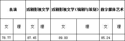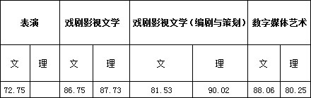 二、表演、戲劇影視文學、戲劇影視文學(編劇與策劃)、數(shù)字媒體藝術(shù)專業(yè)錄取線