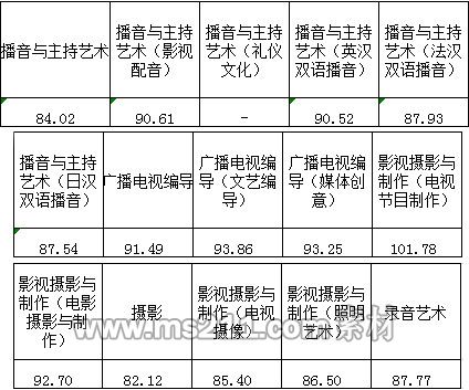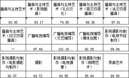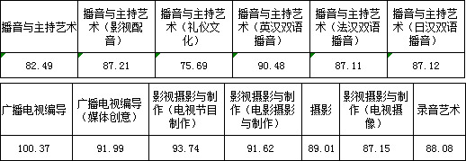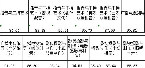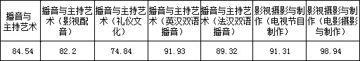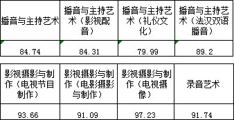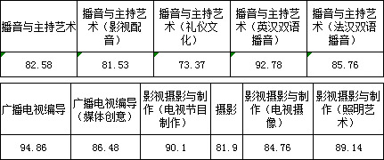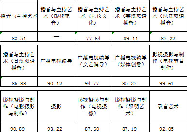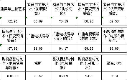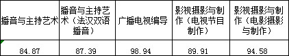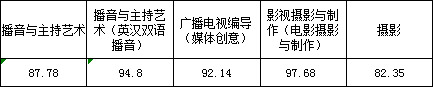 三、播音與主持藝術(shù)、廣播電視編導、影視攝影與制作、攝影、錄音藝術(shù)專業(yè)錄取線