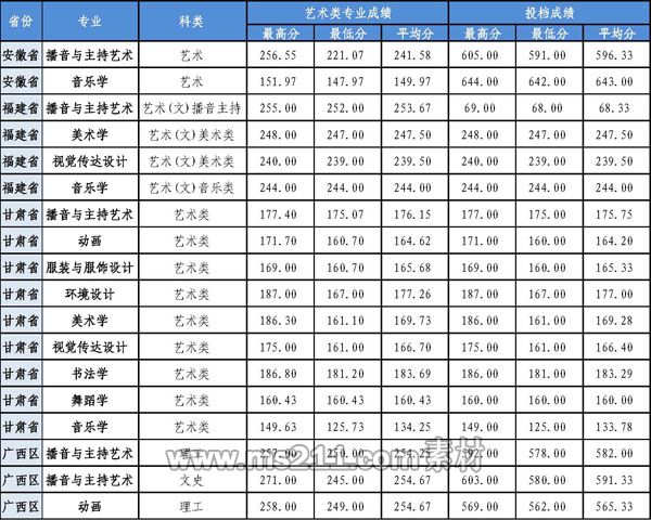 甘肅?。好佬g(shù)設(shè)計(jì)學(xué)類、音樂(lè)學(xué)、舞蹈學(xué)、播音與主持藝術(shù)、書(shū)法學(xué)