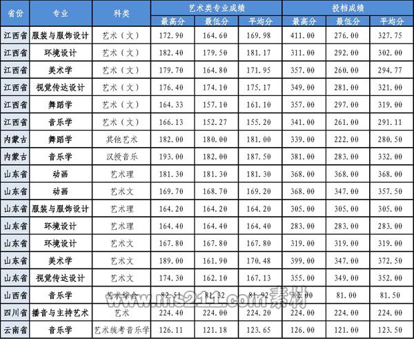 江西?。好佬g(shù)設(shè)計(jì)學(xué)類、音樂(lè)學(xué)、舞蹈學(xué)
