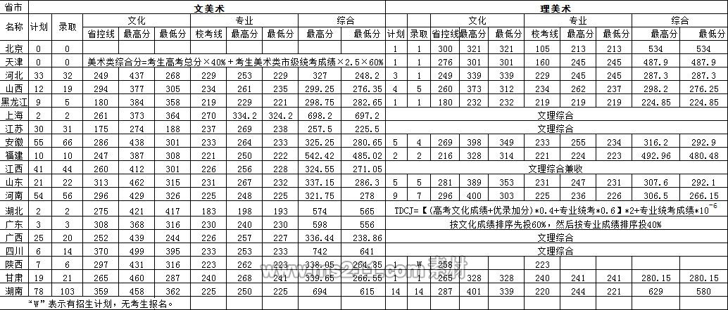 承認(rèn)美術(shù)統(tǒng)考成績(jī)的省份(天津、遼寧、上海、湖北、湖南、廣東、四川)考生,文化成績(jī)達(dá)到所在?。ㄖ陛犑?、自治區(qū))藝術(shù)類錄取分?jǐn)?shù)線,考生統(tǒng)考成績(jī)須達(dá)到生源所在?。ㄖ陛犑?、自治區(qū))統(tǒng)考合格線,按照各省規(guī)定的辦法進(jìn)行錄取。