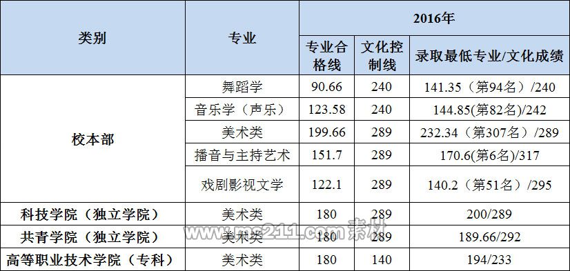 南昌大學2016年江西省藝術類本科專業(yè)錄取分數(shù)線