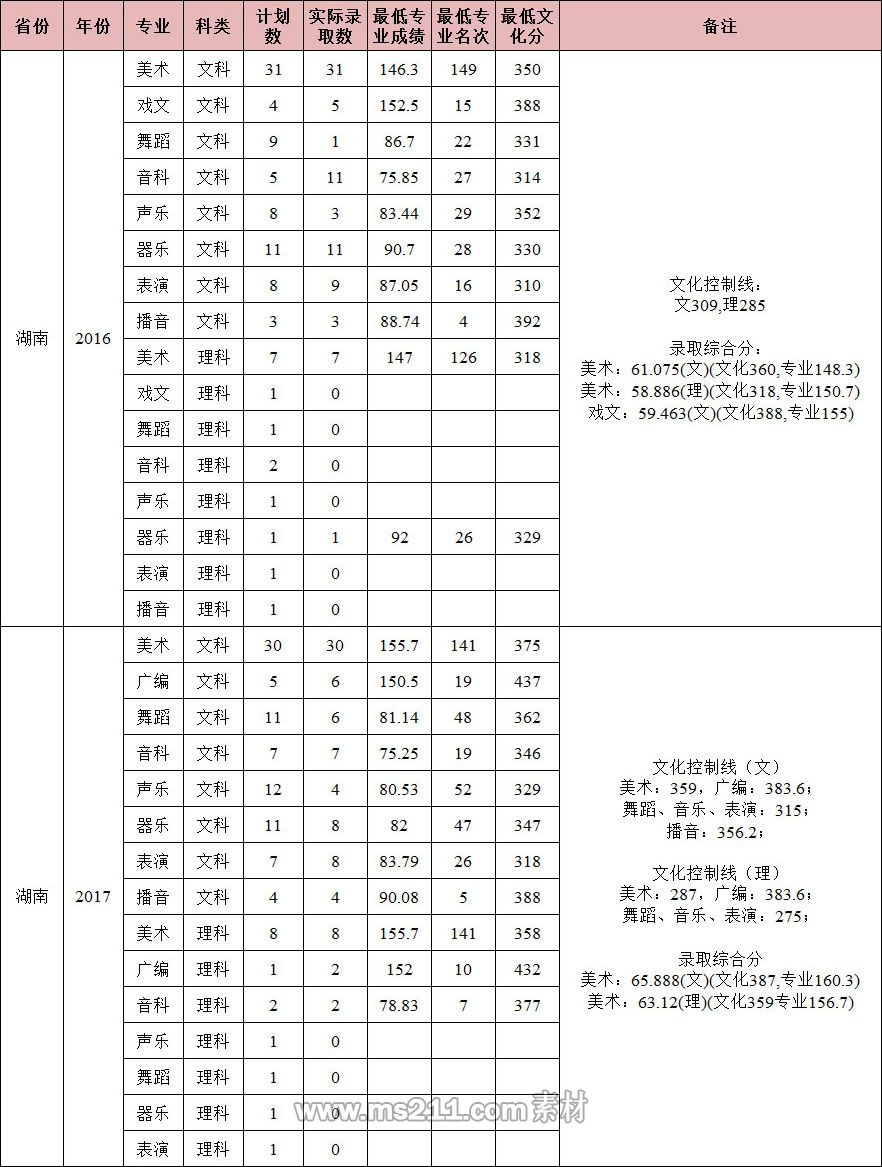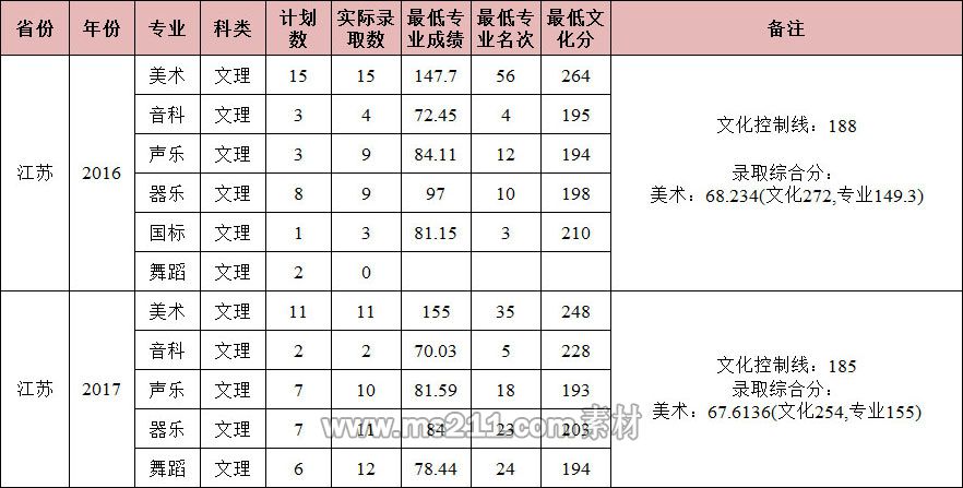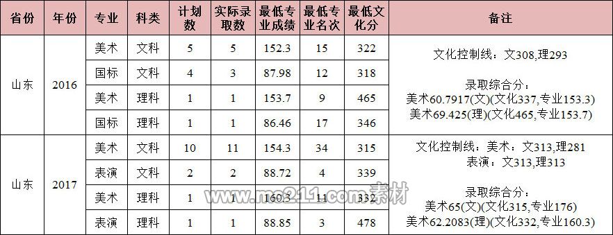 南昌大學2016-2017年省外藝術類本科專業(yè)錄取分數(shù)線