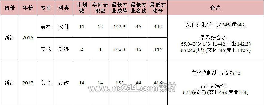 2、美術類專業(yè)(包含繪畫、視覺傳達設計、環(huán)境設計、產品設計、服裝與服飾設計、動畫)按綜合分分省按計劃從高分到低分錄?。ňC合分=(專業(yè)考試成績/專業(yè)考試成績滿分)×50+(文化考試成績/文化考試成績滿分)×50)。