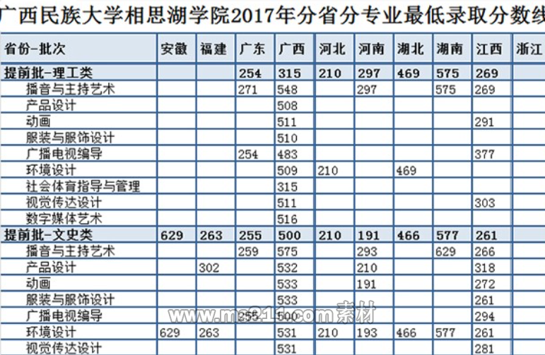 2.廣西考生:將文化成績和藝術統(tǒng)考成績以一定比例折合成綜合分從高分到低分擇優(yōu)錄取。綜合分同分條件下參考相關科目成績和專業(yè)素質。