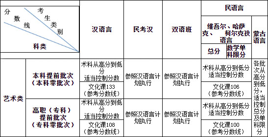 2018年新疆維吾爾自治區(qū)藝術(shù)類文化課錄取控制分?jǐn)?shù)線