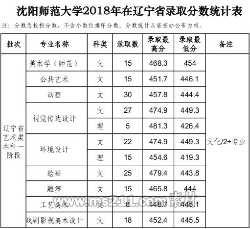 沈陽師范大學(xué)2018年省外藝術(shù)類本科專業(yè)錄取分?jǐn)?shù)線(暫未公布)