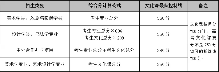 2020年魯迅美術(shù)學(xué)院各類別綜合分計算辦法及文化課最低控制線