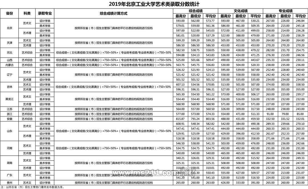備注:2019年北京工業(yè)大學藝術(shù)類專業(yè)按設(shè)計學類和美術(shù)學類兩個專業(yè)大類招生,其中設(shè)計學類包含視覺傳達設(shè)計、環(huán)境設(shè)計、產(chǎn)品設(shè)計、服裝與服飾設(shè)計、工藝美術(shù)和數(shù)字媒體藝術(shù)6個本科專業(yè),美術(shù)學類包含繪畫、雕塑2個本科專業(yè),本科畢業(yè)均授予藝術(shù)學學士學位。