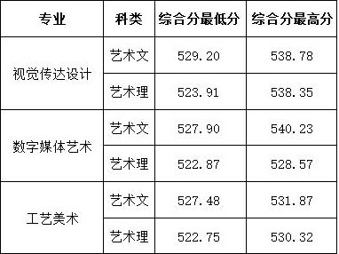 我校2019年本科普通批(美術(shù)類)計劃210人,滿計劃投檔210人,由于1個考生專業(yè)不服從調(diào)劑被退檔,本批次共錄取209人。藝術(shù)文綜合分最低分527分,最高分540分;藝術(shù)理綜合分最低分522分,最高分538分。生源質(zhì)量較往年進一步提高,各專業(yè)錄取分?jǐn)?shù)如下: