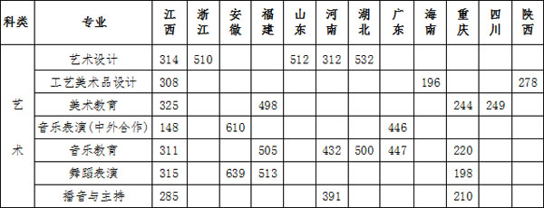 備注:江西省內(nèi)錄取位次:美術(shù)與設(shè)計學(xué)類5698、音樂學(xué)類1253、舞蹈學(xué)430、播音與主持藝術(shù)1787。