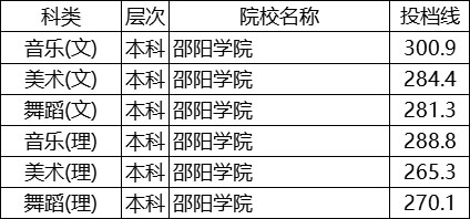 邵陽學(xué)院2019年省外藝術(shù)類本科專業(yè)錄取線