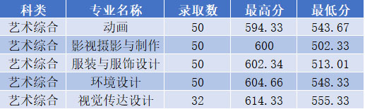 動畫50、影視攝影與制作50、服裝與服飾設(shè)計50、環(huán)境設(shè)計25、視覺傳達設(shè)計25