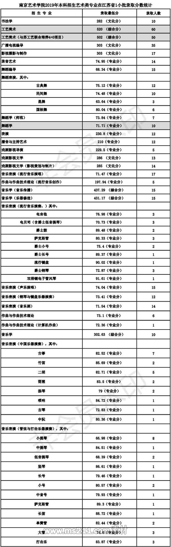 南京藝術學院2019年普通本科招生江蘇省錄取辦法: