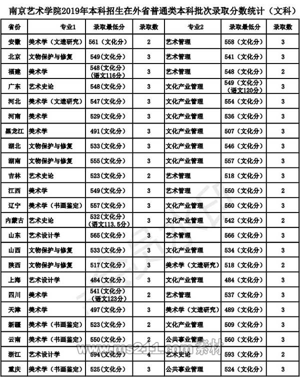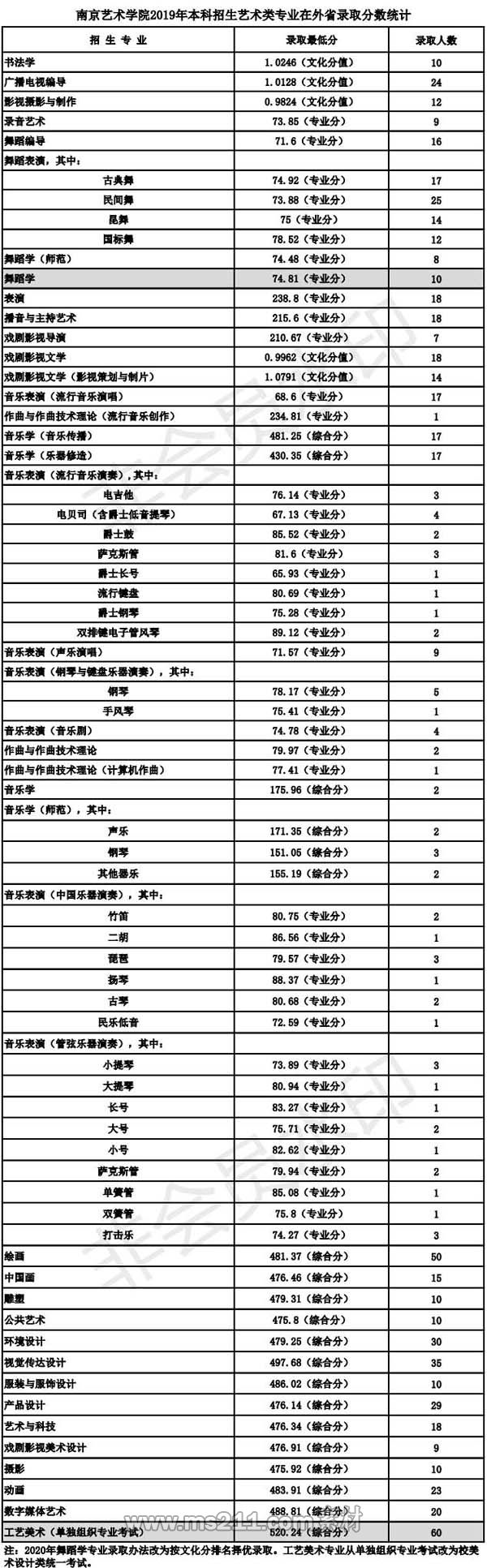 南京藝術學院2019年普通本科招生外省錄取辦法: