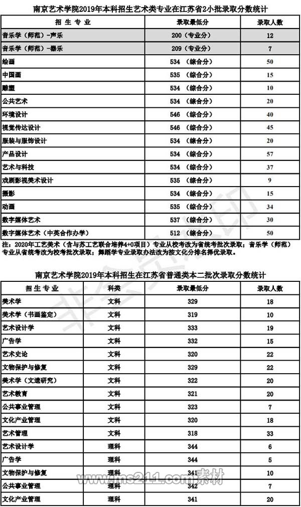 (2)使用南京藝術學院校考成績錄取的音樂學、音樂學(師范)、音樂學(音樂傳播)、音樂學(樂器修造)專業(yè),對文化高考總成績達考生所在省第二批普通本科文科或理科省控線80%(含)以上的考生,按照考生的??紝I(yè)成績和文化成績之和從高分到低分擇優(yōu)錄取。