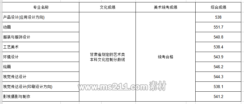 2020年省外分省計劃各專業(yè)錄取分數(shù)線(甘肅):