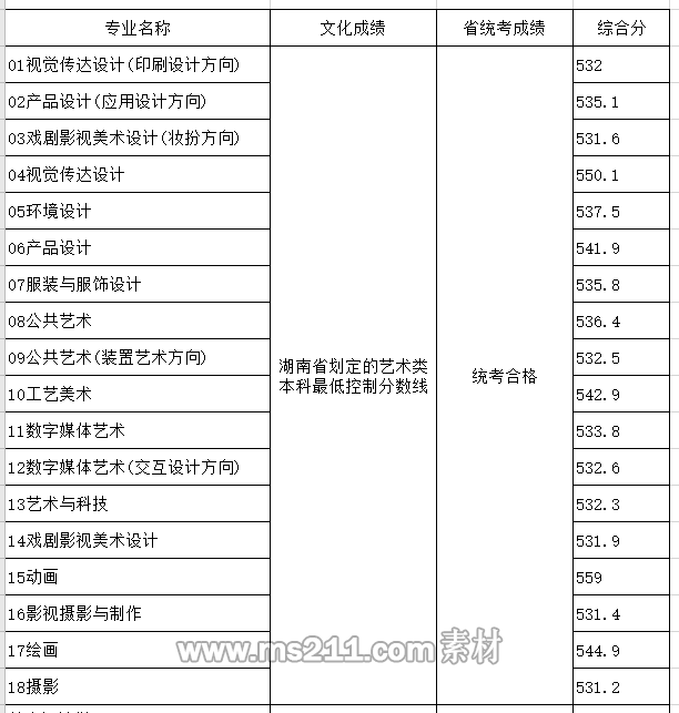 2020年省外分省計劃各專業(yè)錄取分數(shù)線(湖南):