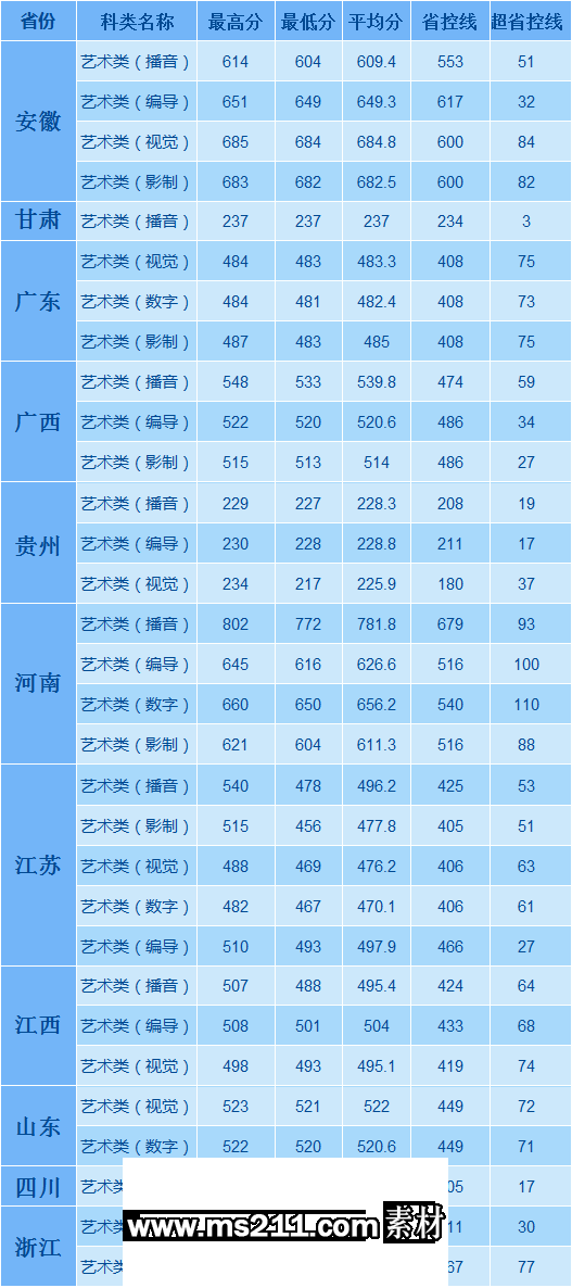 視覺(jué)傳達(dá)設(shè)計(jì)、數(shù)字媒體藝術(shù)和廣播電視編導(dǎo)專業(yè)錄?。何幕趾蛯I(yè)分均達(dá)到生源省(市)省控線的進(jìn)檔考生,按投檔分從高到低順序擇優(yōu)錄取。若考生投檔分相同,則專業(yè)分?jǐn)?shù)高者優(yōu)先。