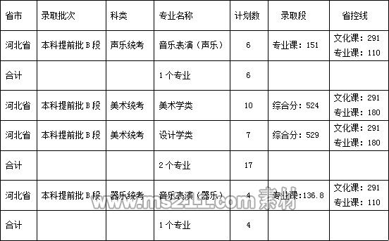 藝術(shù)類專業(yè)按“專業(yè)清”的原則錄取。錄取辦法為文化課達(dá)到省最低控制線后,按專業(yè)課成績從高到低錄取,專業(yè)課成績相同時,優(yōu)先錄取文化課成績高的考生,美術(shù)類實(shí)行藝術(shù)類綜合分投檔的省份,按照綜合成績從高到低錄取。