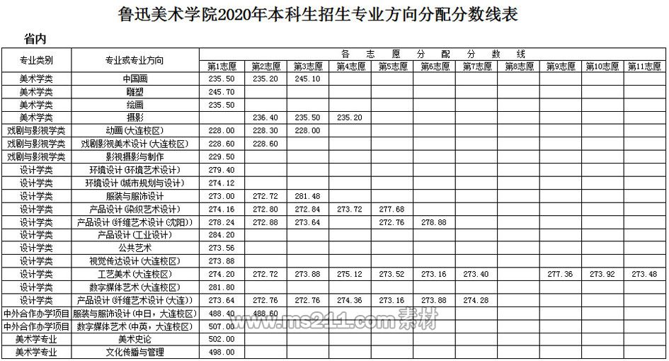 設(shè)計(jì)學(xué)類(lèi)(1305)、書(shū)法學(xué)專業(yè)(130405):文化成績(jī)達(dá)到350分,按綜合分錄取,綜合分=專業(yè)總分×80%+文化總分×20%;