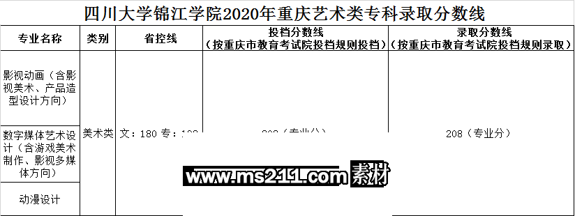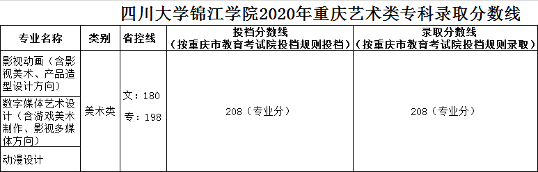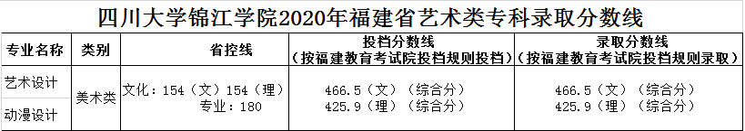 美術與設計類專業(yè),四川省按專業(yè)成績由高分到低分擇優(yōu)錄取,專業(yè)分數(shù)相同時優(yōu)先錄取文化成績較高的考生。其他省份按文化成績與專業(yè)成績之和由高分到低分擇優(yōu)錄取,總分相同時優(yōu)先錄取專業(yè)成績較高的考生。